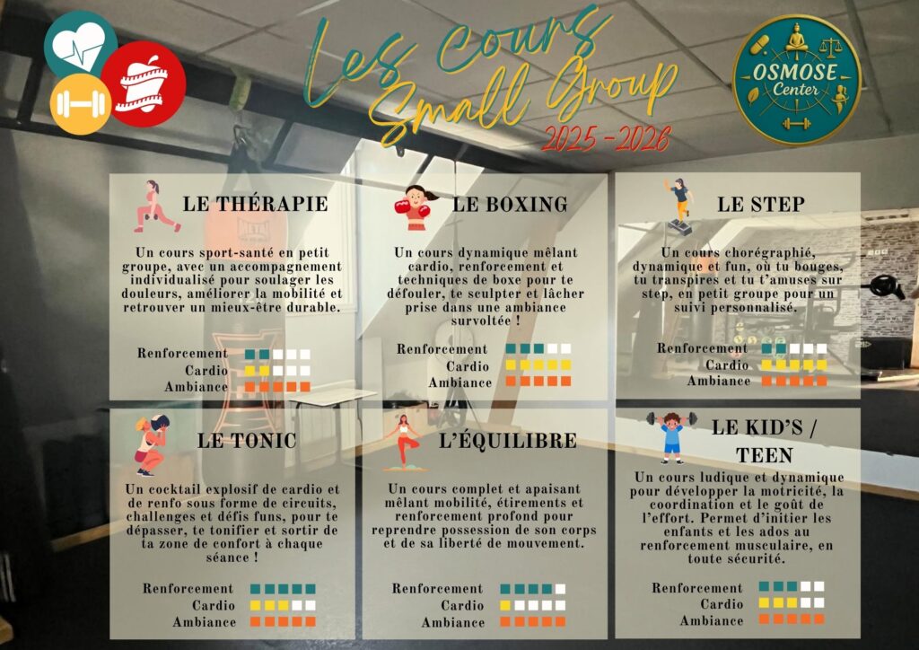 Chez Osmose, le sport sâadapte Ă vous : vos objectifs, votre niveau, vos besoins.